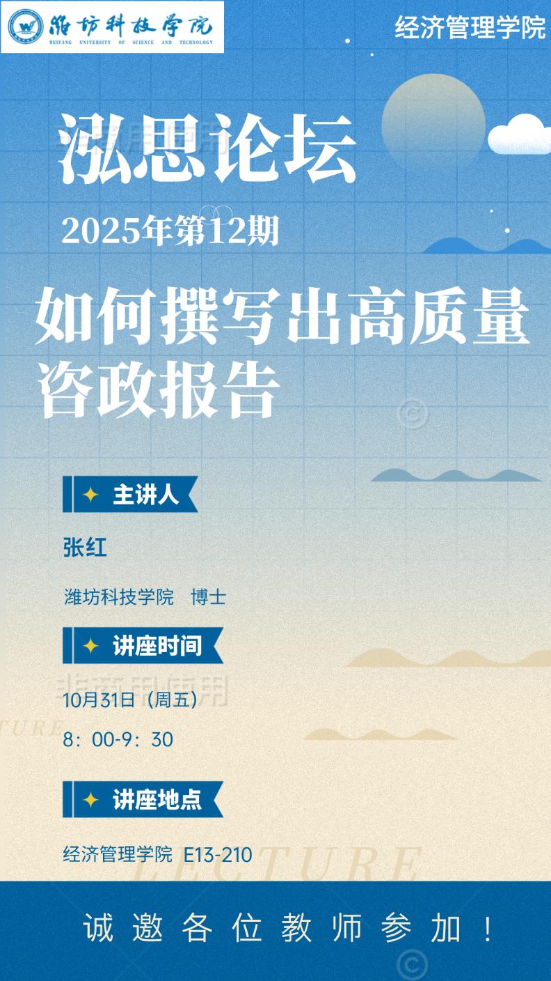 上一条:讲座通知 |2025年第13期“泓思论坛”——高校教师师德师风建设 下一条:讲座通知 | 2025年第11期“泓思论坛”——数智化赋能审计高质量发展