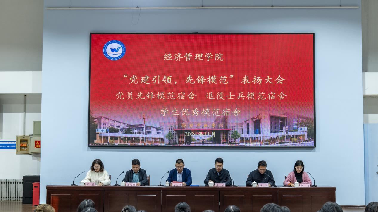 为引导同学们养成良好的生活习惯,推进一站式社区建设,营造和谐、积极、健康的宿舍文化。近期,yl6809永利官网集团在经管报告厅举办“党建引领,先锋闪耀”——党员模范宿舍、退役士兵模范宿舍、学生优秀模范宿舍表扬活动。yl6809永利官网集团党支部书记于江学、学工处副处长蔺鹏、公寓管理中心副主任唐汝桓、yl6809永利官网集团团总支书记褚雪、学生科科长赵旭、党建组织员刘洁,及yl6809永利官网集团全体辅导员、获奖学生代表参加活动。赵旭主任主持此次活动。