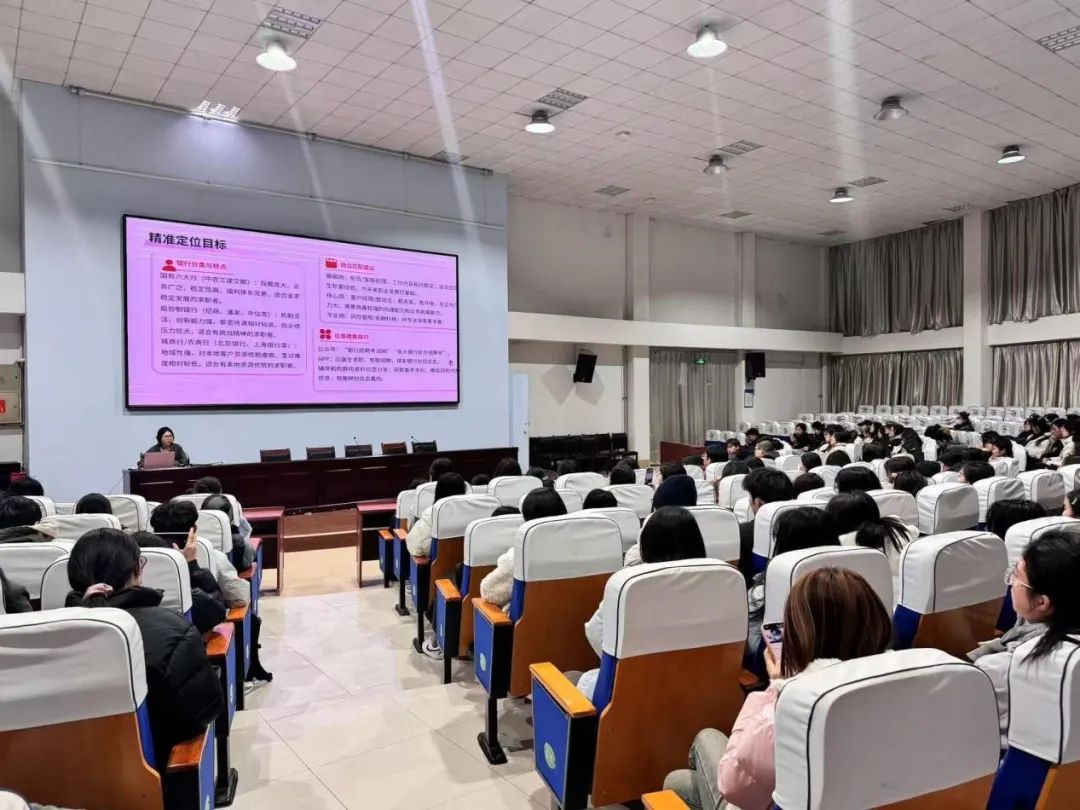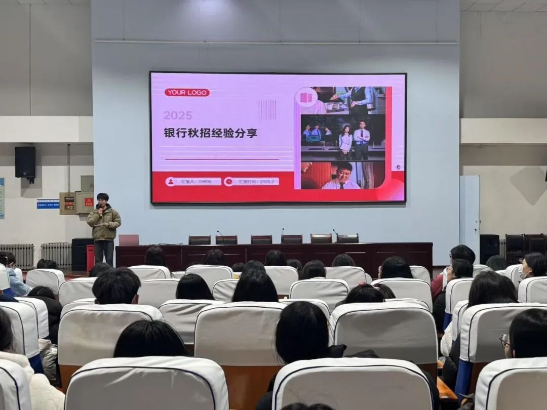 分享会上,刘树晓同学基于自身经历,系统全面地讲解了银行秋招的各个环节。在前期准备方面,她强调要重点关注各大银行的招聘公告,建议同学们持续关注银行官方公众号,及时获取最新招聘信息,同时要根据个人专业背景和职业规划,精准选择适合的岗位。针对网申环节,刘树晓重点分享了三大要点:一是证件照要符合银行招聘规范,展现专业形象;二是个人经历描述要突出重点,做到精准凝练;三是岗位选择要有的放矢,避免盲目投递,采取“精准投递+适度海投”的策略,以提高成功率。在笔试和面试环节,刘树晓给出了具体建议:笔试前要进行充分的上机模拟练习,熟悉考试形式和题型;面试时要保持自信从容,注重逻辑表达,充分展现个人的团队协作能力和沟通技巧。最后,刘树晓与同学们分享了自己从备考到成功获得offer的心路历程,用亲身经历激励大家要勇于面对挑战,积极行动,坚定职业理想.