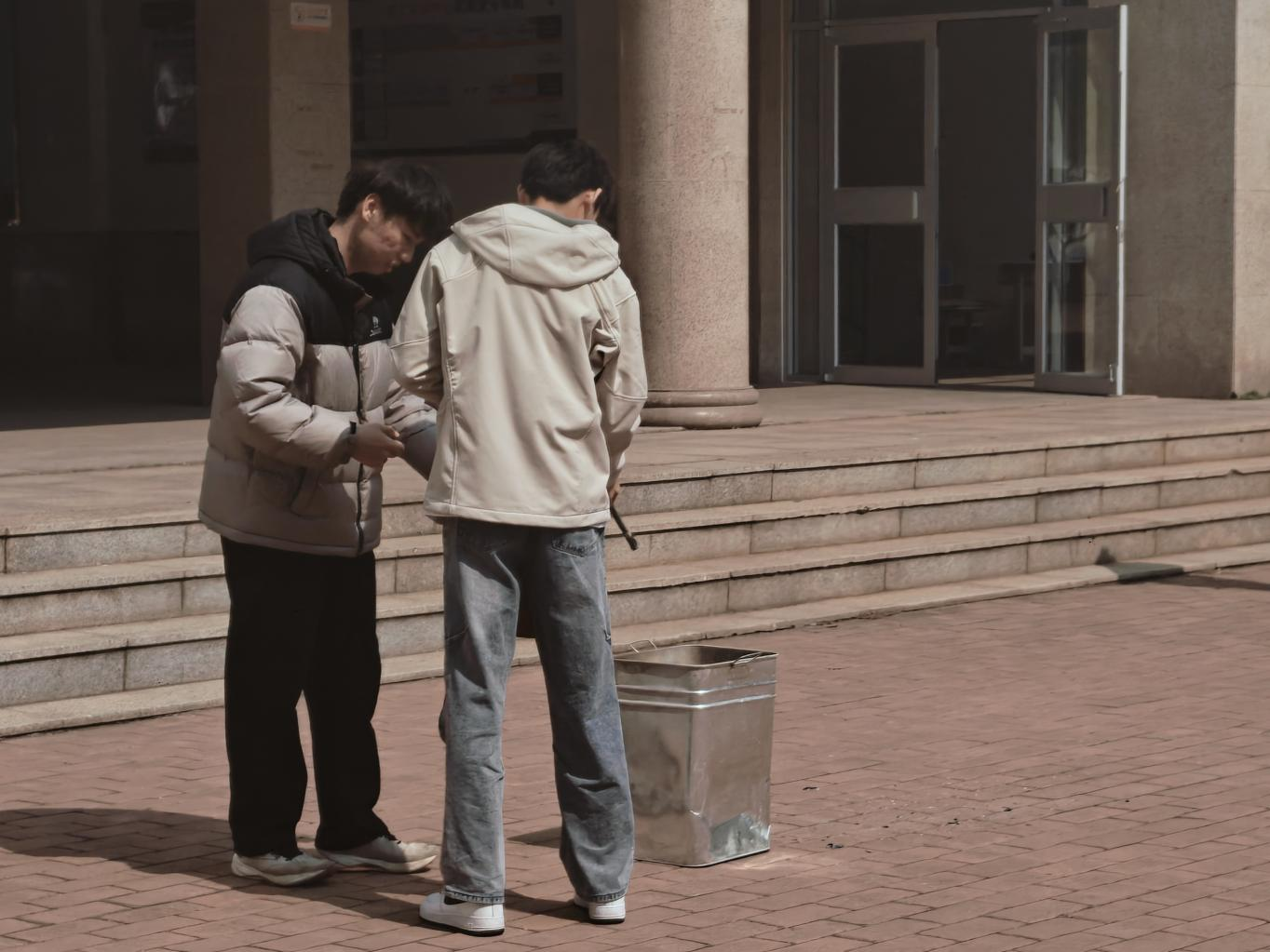 在实操演练环节,工作人员现场演示了灭火器等常见消防器材的正确使用方法,按照“提、拔、握、压”的操作步骤,逐一讲解操作细节与注意事项。同学们在安检部的指导下,进行实操体验,亲手操作灭火器完成灭火模拟演练,将理论知识转化为实操能力,切实掌握了消防器材的使用技巧。