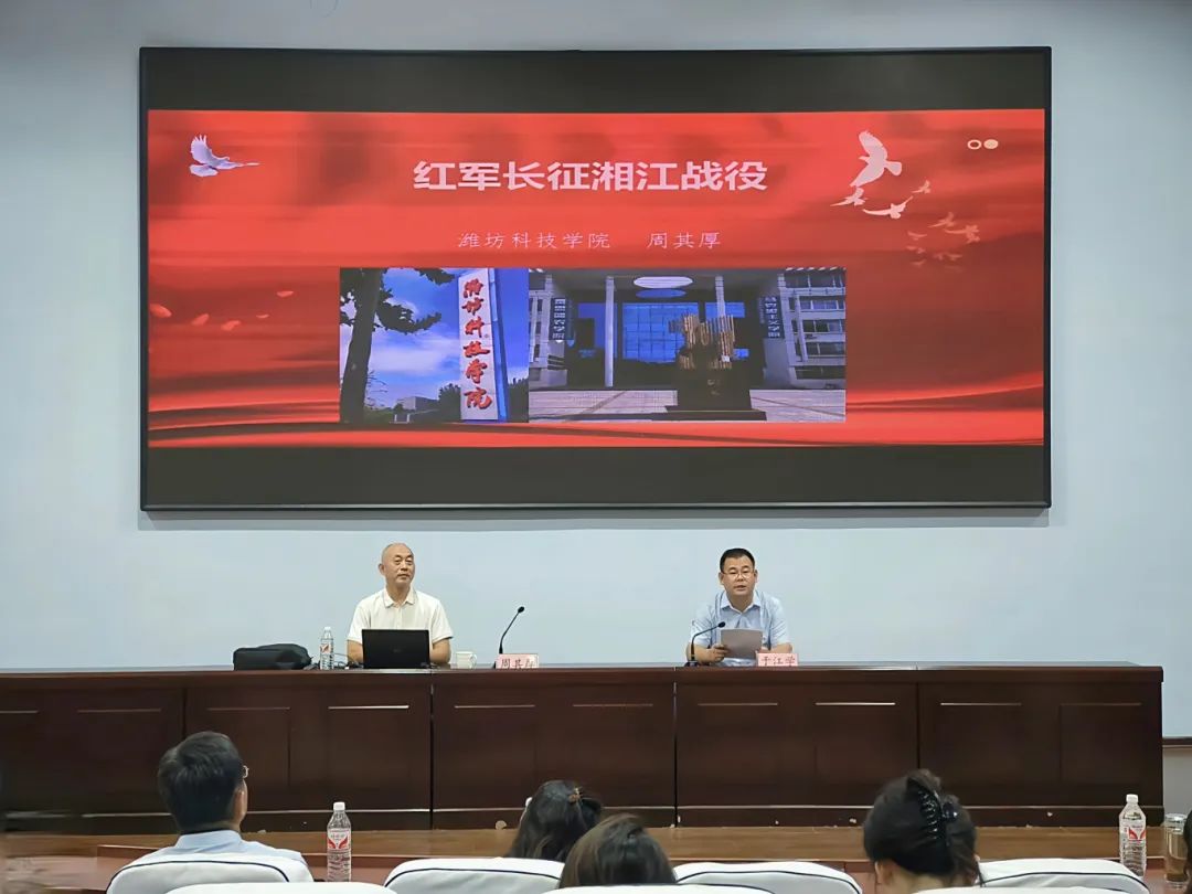 周教授讲到,很多人可能听过“遵义会议是我党生死攸关的转折点”这一句话,但是,没有湘江战役,便不会有遵义会议。周教授的讲座让我们深刻体会到了湘江战役的惨烈和悲壮,也让我们意识到湘江战役是一页沉重得翻不过去的历史。今天,我们进入新时代,踏上新征程,必须清醒认识到,新的长征之路并非大道坦途、一帆风顺,而是像湘江战役这样充满着血与火的考验和斗争。我们要将红军长征湘江战役中的英勇事迹和革命精神,转化为我们接下来工作和学习中推动新时代中国特色社会主义事业发展的强大动力。不忘初心、牢记使命,走好新的时代长征路。