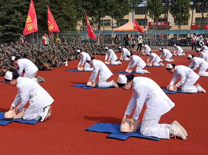 “心肺复苏”急救知识培训是我校军训活动中必不可少的一环。通过此次培训,提高了同学们对“心肺复苏”应急救护的认识,增强了安全意识,为今后的校园安全保驾护航,同时有利于两学院间的工作开展。