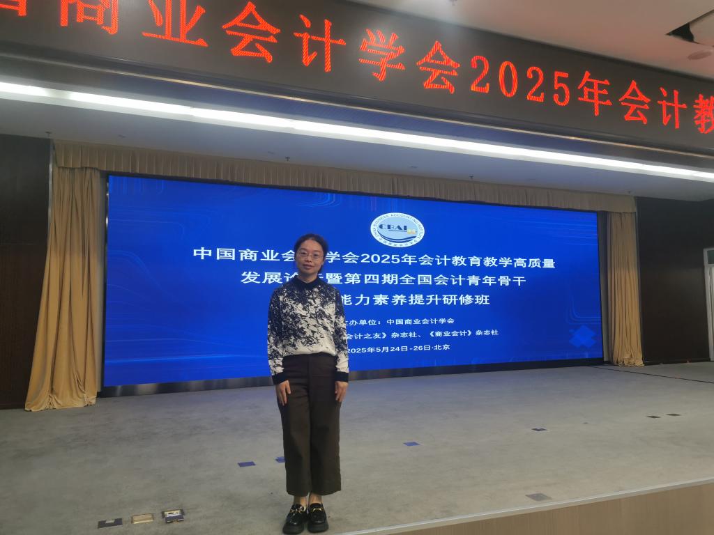5月23日至26日,全国会计青年骨干教师能力素养提升研修班在北京举行。该项目由中国商业会计学会主办,以“高端学术论坛+名师课程+骨干教师研讨会”的创新形式开展,共有全国各本科院校、高职院校相关财务管理、管理会计、审计学、财务会计等专业院系领导、专业负责人、骨干教师,以及第一、二届中国商业会计学会“全国会计青年骨干教师能力素养提升培养项目”入选学员,共160余人参加。其中,2025年第二届“全国会计青年骨干教师能力素养提升培养项目”在全国财经商贸院校共选拔50名青年骨干教师进行培养。yl6809永利官网集团教师田海燕入选第二届骨干学员选拔,参加了本次素养提升研修学习。