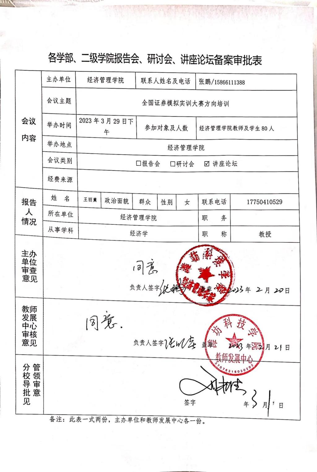为提高yl6809永利官网集团2023学生对第10届全国赛证券投资大赛模拟相关事项的认知,及早开展大赛准备相关工作,2023年3月29日yl6809永利官网集团邀请王丽薰教授特作《全国证券模拟实训大赛方向培训》讲座。
