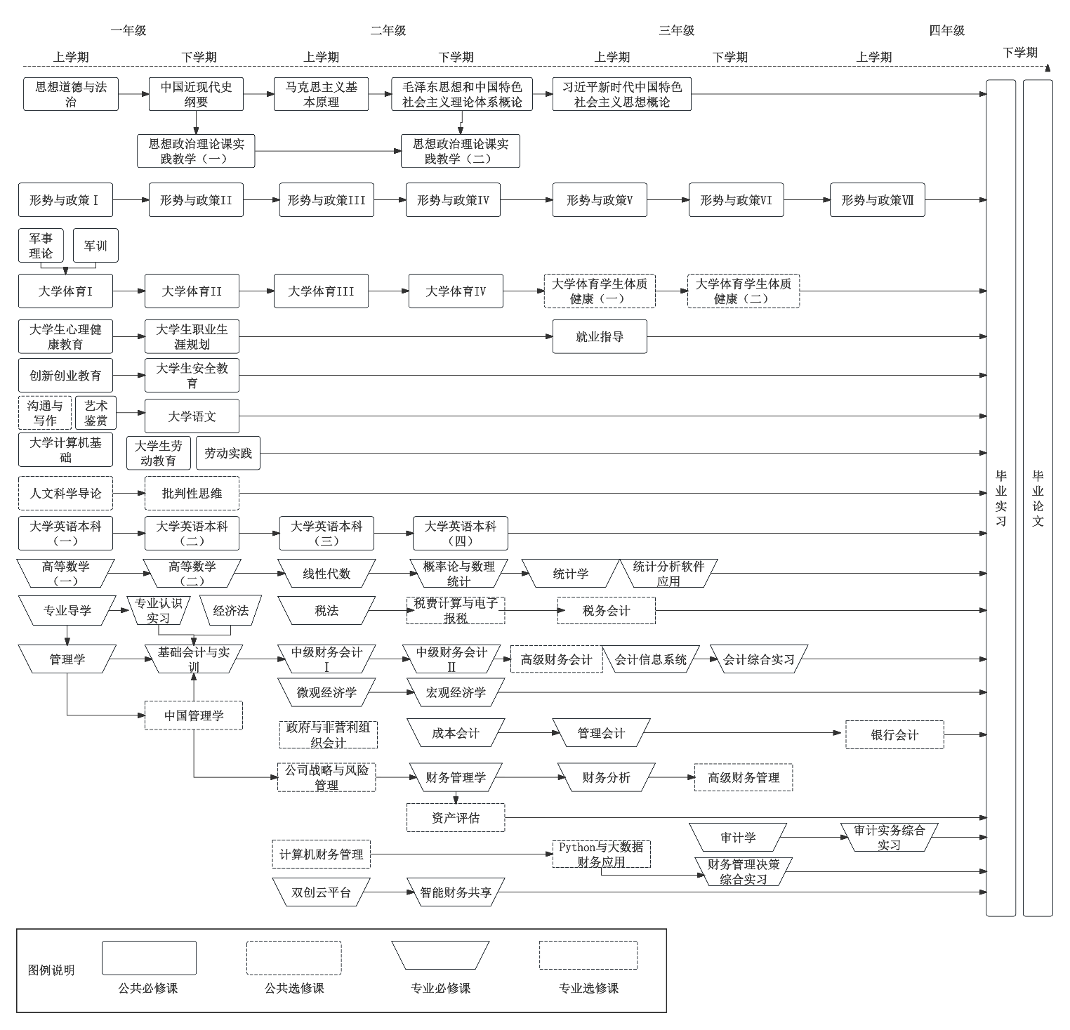 基础会计与实训、中级财务会计、财务管理学、成本会计、管理会计、审计学、财务分析。